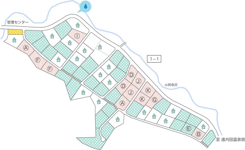 | その他 | 東北電力、公営水道、プロパンガス(個別) 雑排水(個別浄化槽)・雨水(浸透)・浄化槽(個別) ※温泉取り出し口、水道取り出し口 各区画に設置済み ※汚水升に接続する時は管理会社の承認を必要とします |